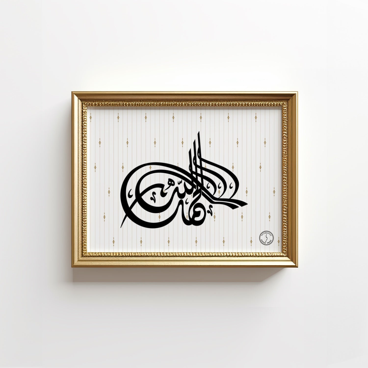 Our Alhamdulillah art print serves two purposes: as a stunning dhikr reminder and as a beautiful addition to your home decor. Its intricate background adorned with a delicate pattern and its classic white and black color scheme make it a versatile piece for any room. Make it yours today!